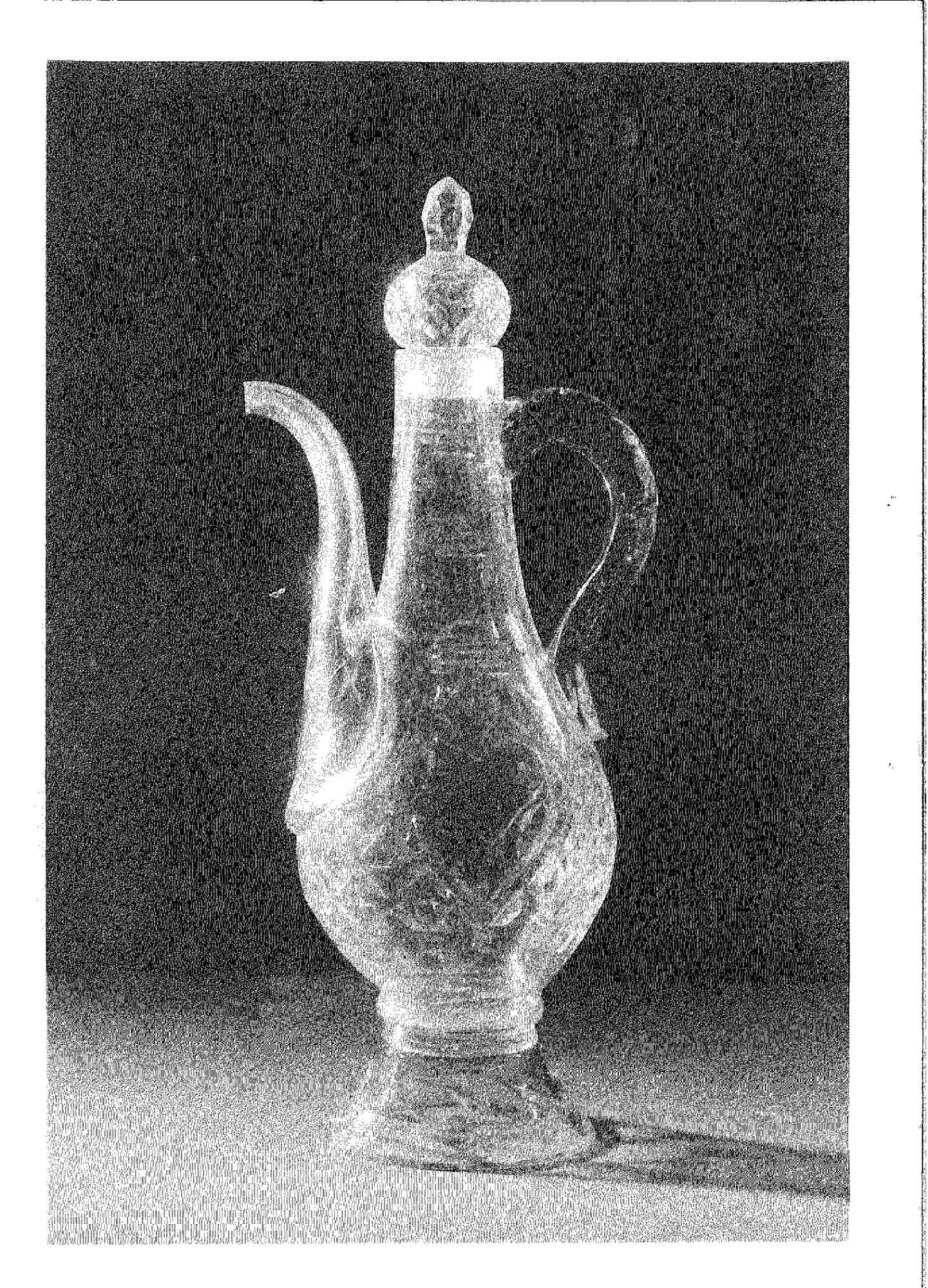 Tall pear-shaped body on flaring base. Spout and handle.