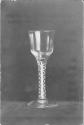 DescriptionBlown. Cylindrical bowl, white twist stem.
