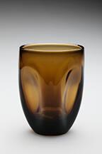 DescriptionHeavy amber glass, four vertical depressions.