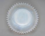 DescriptionPressed fiery opalescent lead glass. Inverted Panelled Diamond Point, beaded rim, smooth interior, underside base with wreath and flower.