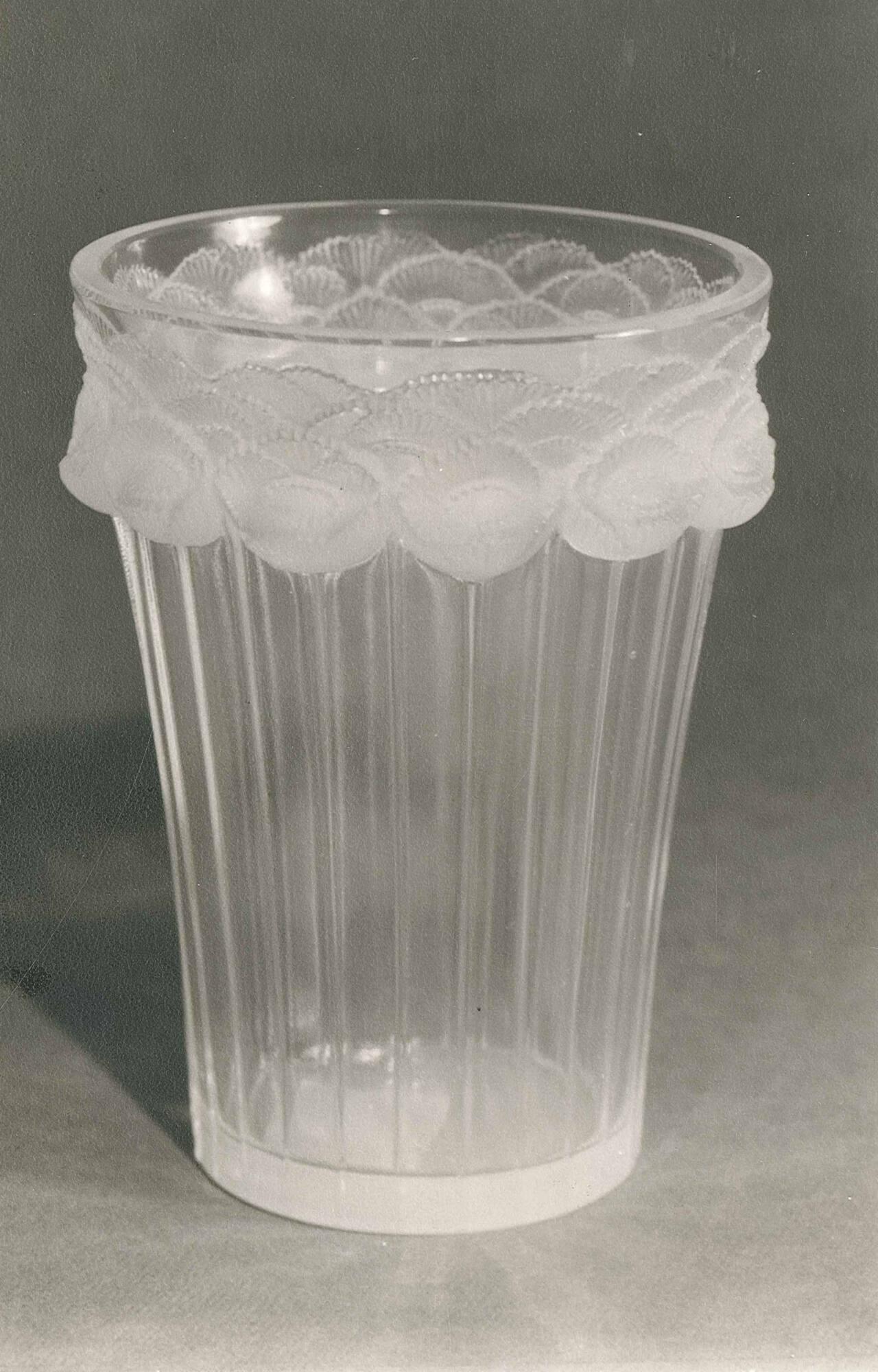 DescriptionOpalescent glass, with narrow decorative border in relief. Poppies.