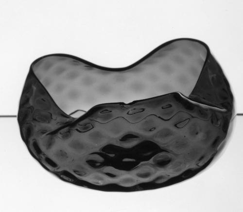 MediumAmberina glass; blown and ball-optic-molded, then finished by tooling. Concave, polished pontil mark.