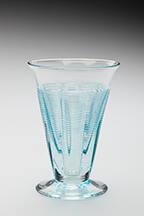 DescriptionCottage Set, K-50-195. Colorless glass, bowl blown in a paste mold for form, mechanically applied turquoise-blue relief threading, pattern molded with eight deep vertical ribs; applied, tooled foot; rim sheared and fire polished; polished pontil mark.