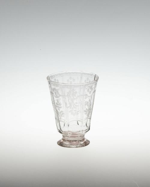 DescriptionClear glass on low foot. Fluted sides, and engraved pattern of scrolls and flowers.
