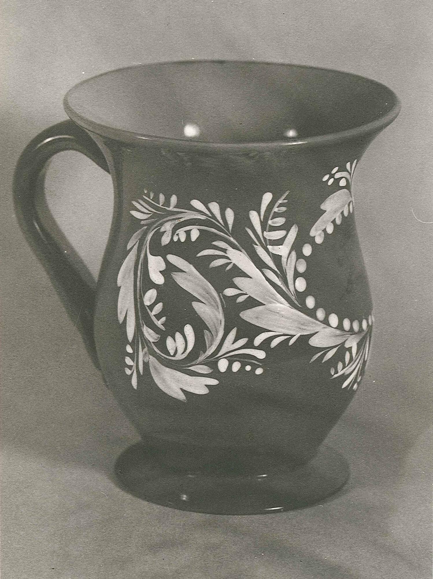 DescriptionFree-blown, applied handle, enameled, and gilded.