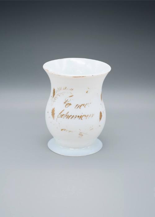DescriptionDecorated with gold wreath enclosing the inscription.