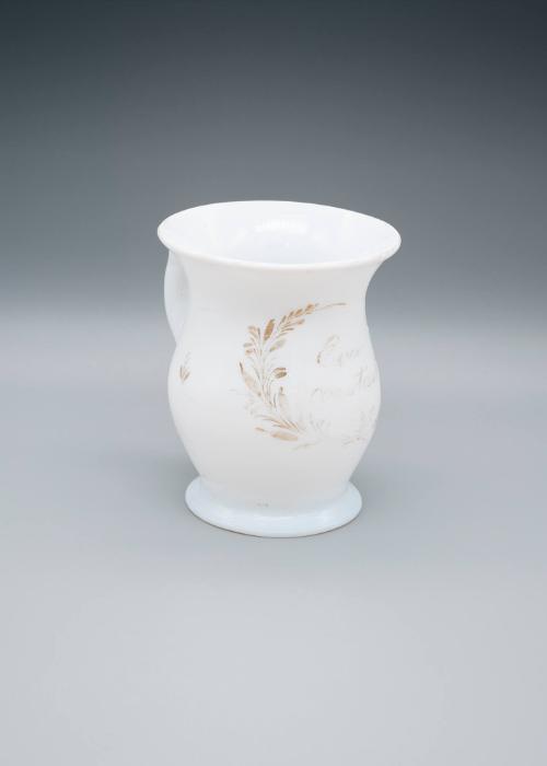 DescriptionDecorated with gold wreath enclosing the inscription.
