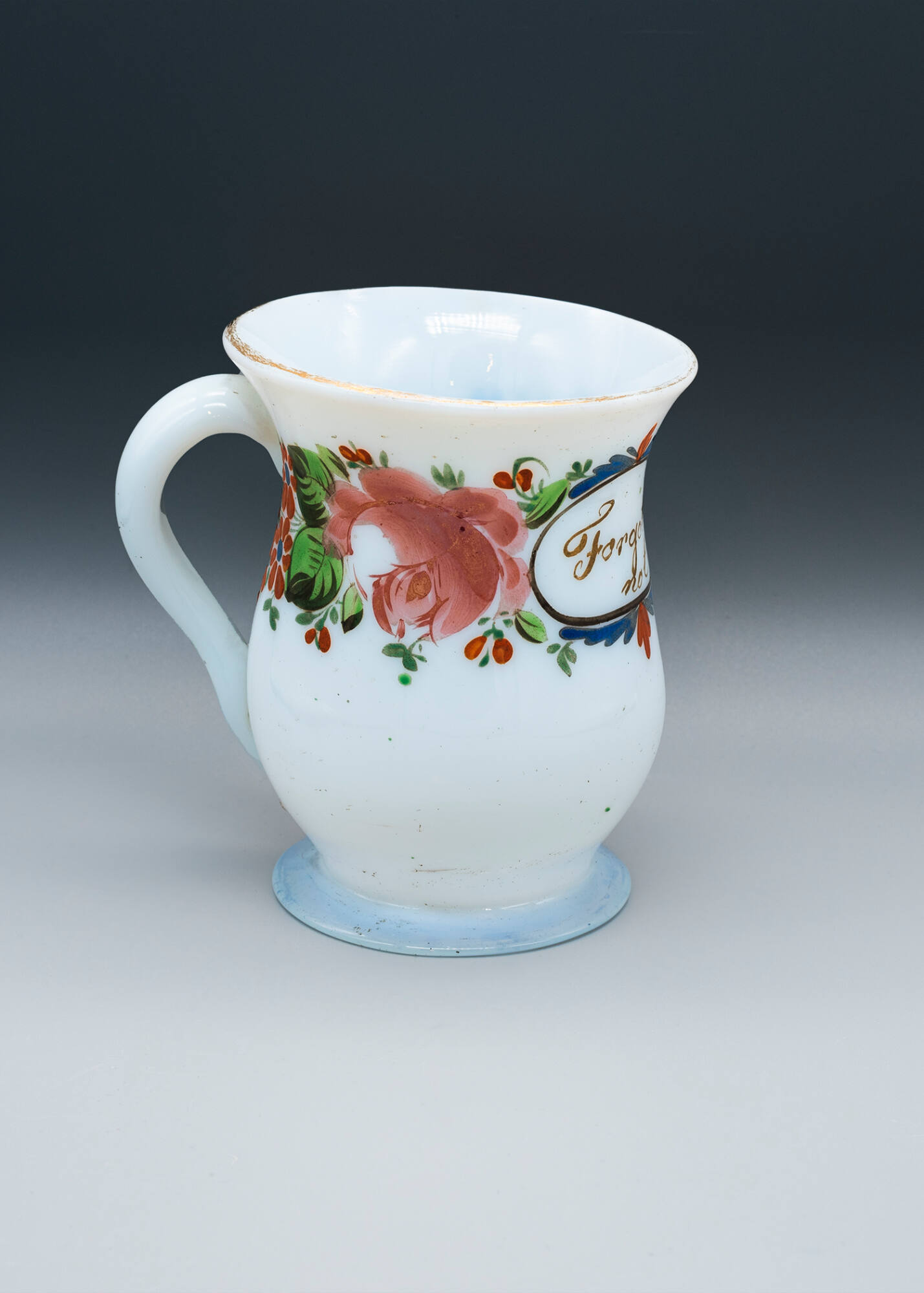 DescriptionGlass decorated with gold wreath enclosing the inscription.