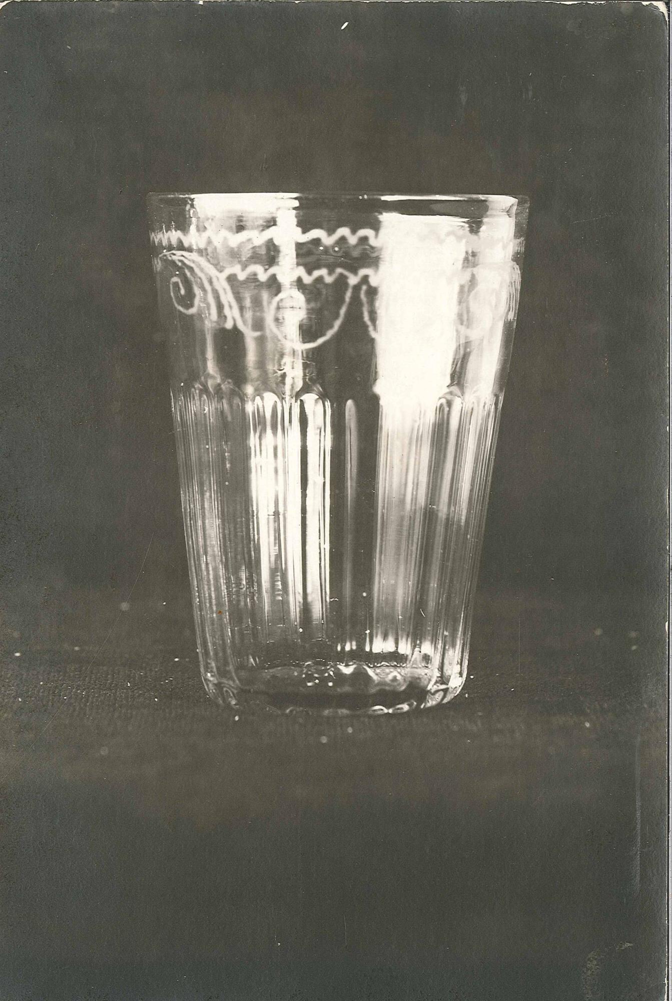 DescriptionClear thin white glass. Fluted below and engraved around upper rim. Pattern-molded and wheel engraved.