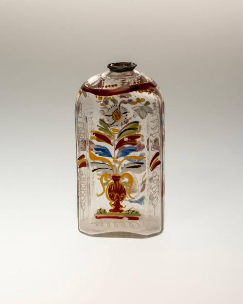 DescriptionFree-blown, tooled, enameled, metal neck.