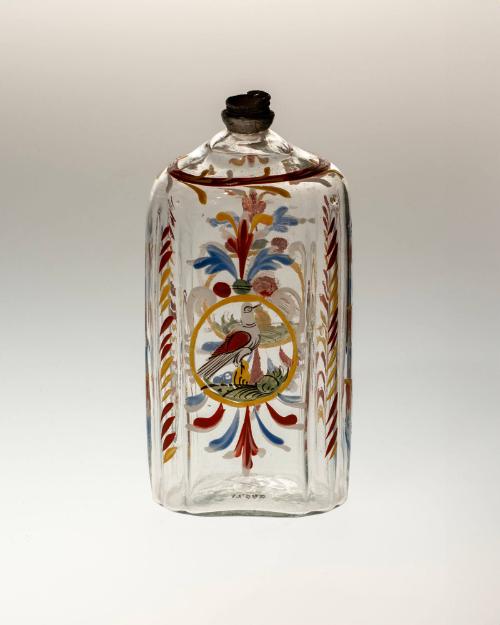 DescriptionFree-blown, tooled, enameled, metal neck.