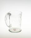 DescriptionBlown cylinder-type mug with engraved tulip motif and applied strap handle.