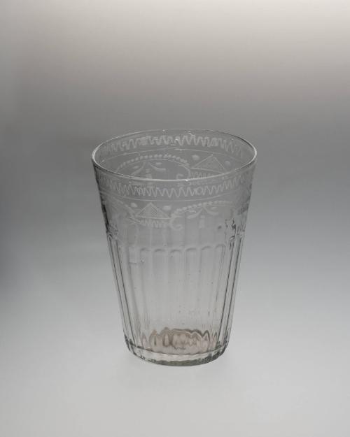 DescriptionBlown with vertical ribbing and etched border.