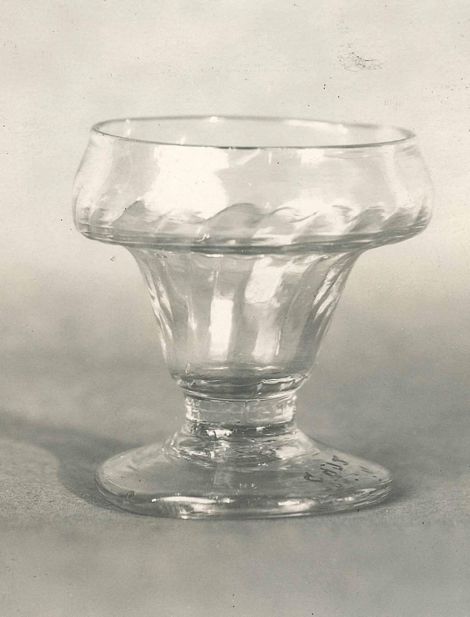 DescriptionClear white glass. Goblet shape. Delicate spiral fluting in relief. Mold blown glass.