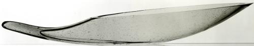 MediumLong, shallow, horn shape; chartreuse color glass.