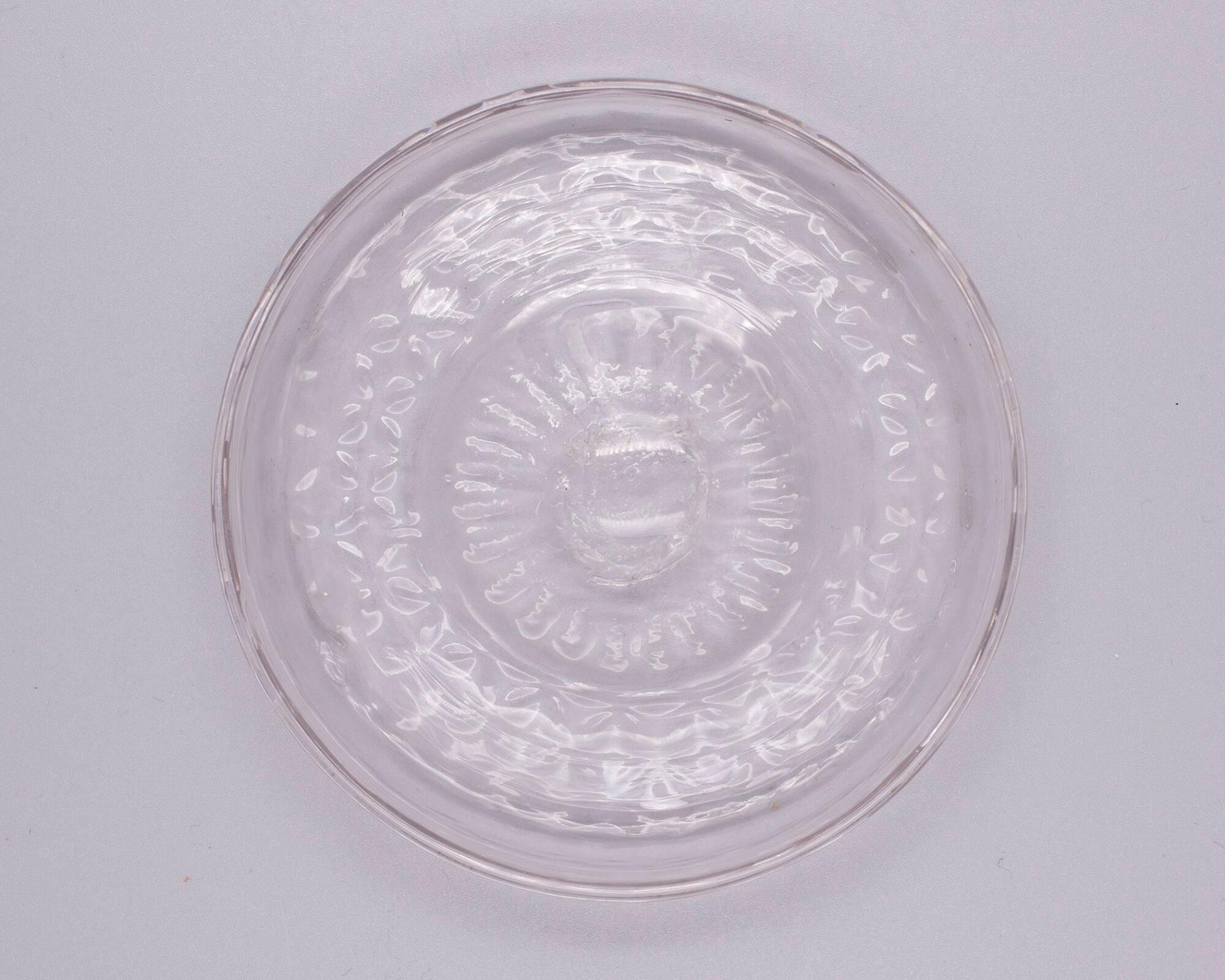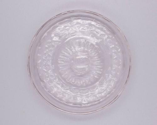 DescriptionBlown in figured three-mold. Clear glass, with pattern in relief.
