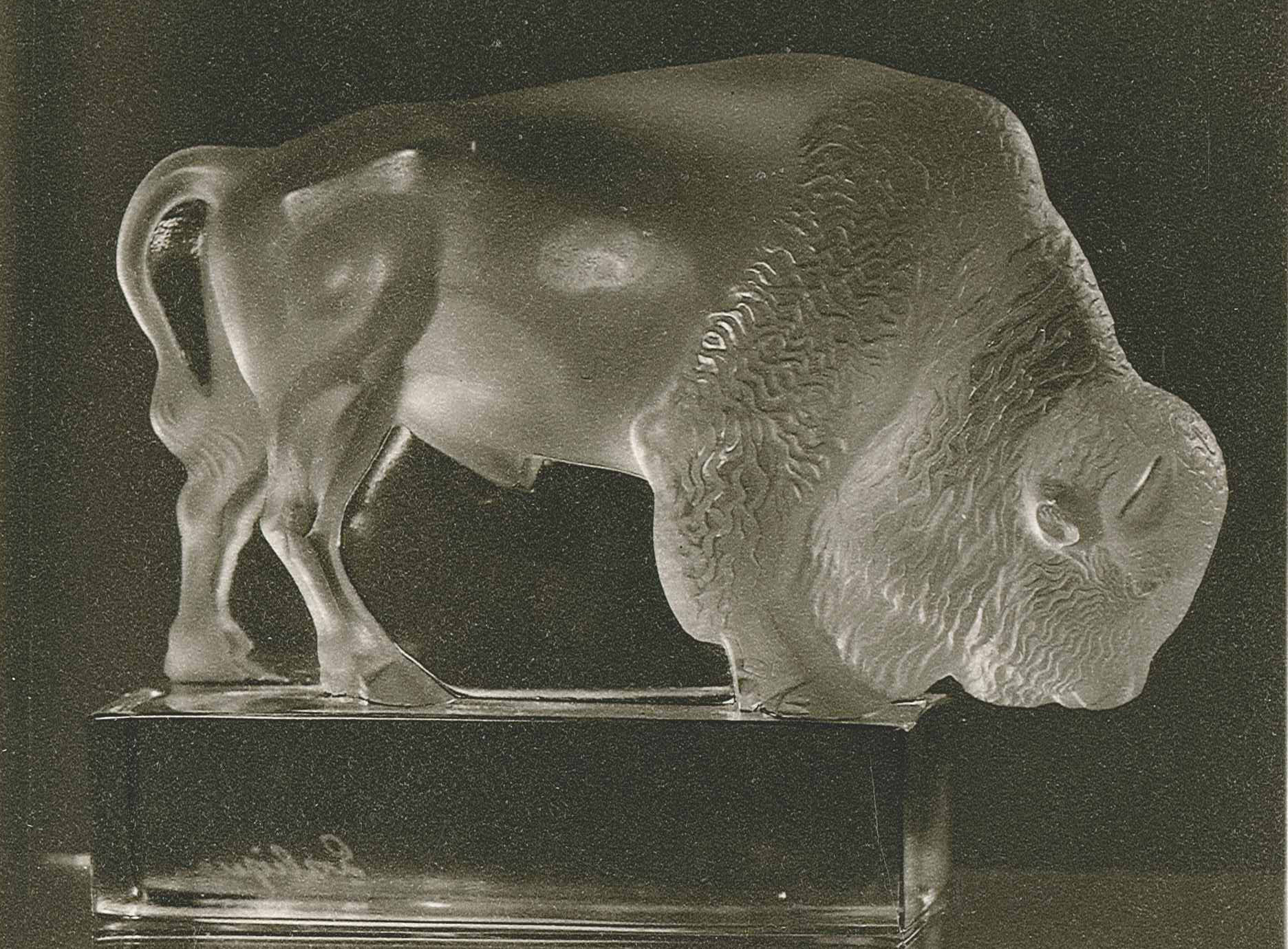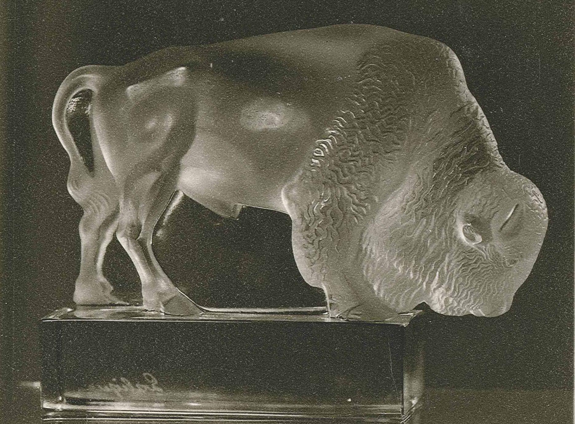 DescriptionBuffalo in fronted glass on clear base.