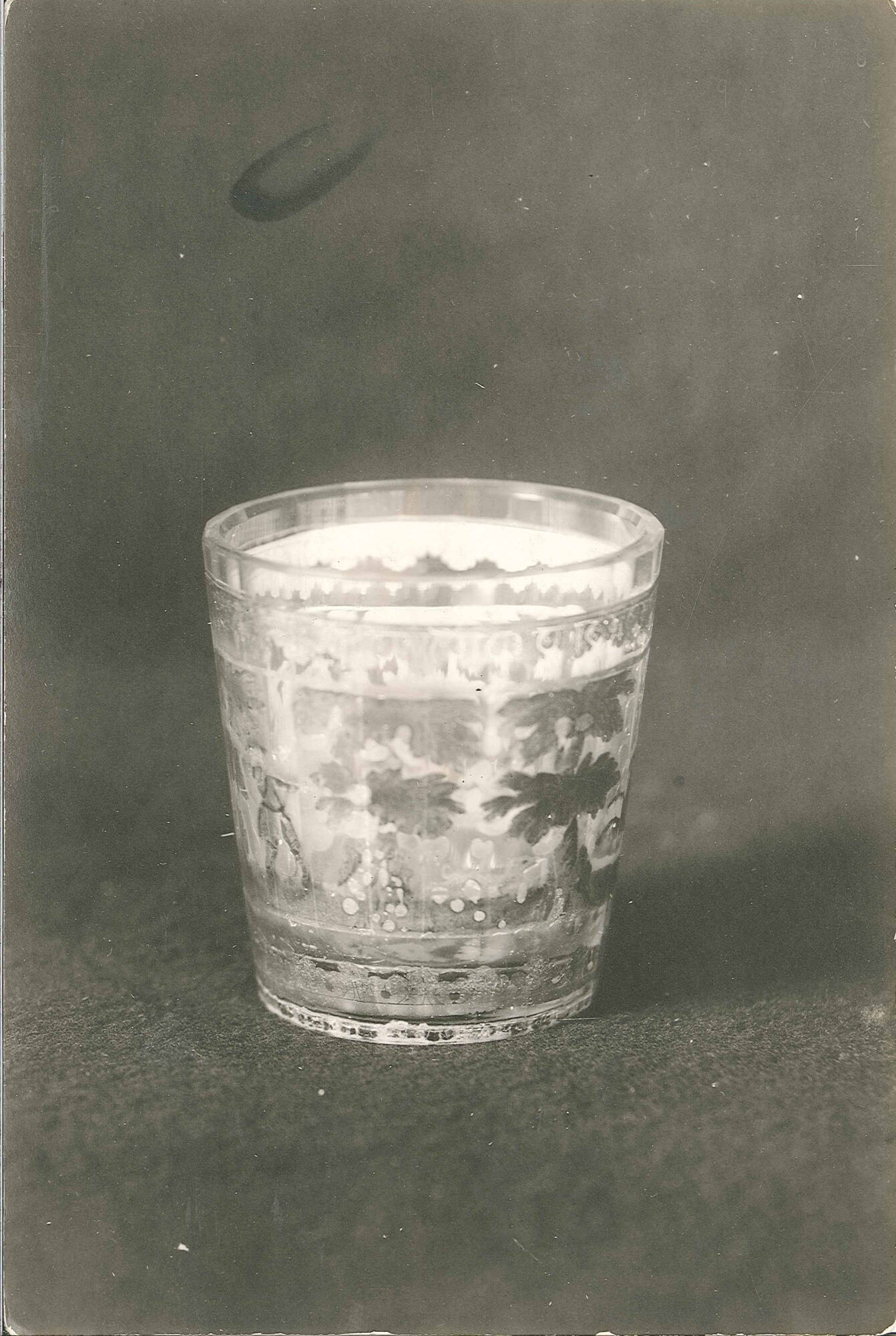 DescriptionFlashed and etched glass. Design in colors and gold. Ruby base.
