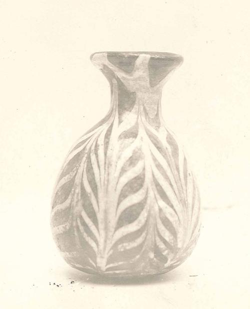 MediumGlass; mold-blown and tooled, white threads dragged and marvered.