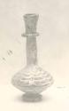 DescriptionPurple body; applied opaque white decoration; upper part of neck conical; tooled flange below; lower part of neck cylindrical; flattened spherical body; circular foot; decorated from below rim to foot with applied and marvered opaque white threads in looped pattern.