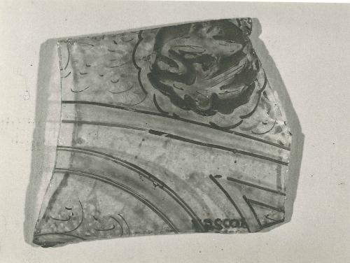 MediumGlass; free blown; enameled and gilded. Colorless ground; red and blue enamel