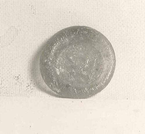 DescriptionTranslucent dark blue glass with Cufic inscription impressed in the center.