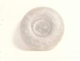 DescriptionThick circular piece of opaque black glass with small circular inscription on face. Single Cufic figure on reverse.