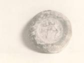 DescriptionTranslucent manganese glass with occasional spots of opaque light blue glass. Cufic inscription impressed in the center.