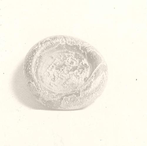 DescriptionTranslucent manganese glass with Cufic inscription impressed on face. Iridescence.