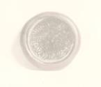 DescriptionTranslucent dark brown glass with Cufic inscription impressed in center of face.