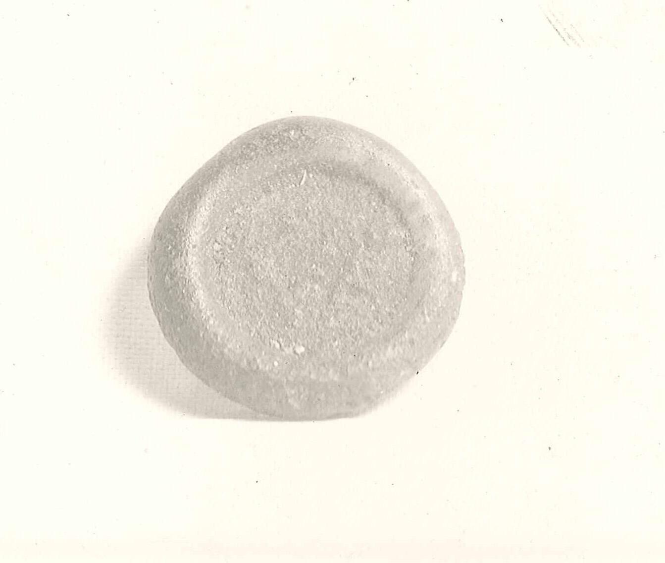 DescriptionTranslucent green glass with Cufic inscription impressed in the center. Some disintegration.