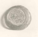 DescriptionTranslucent manganese glass with Cufic inscription impressed in the center.