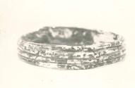 DescriptionCircular bracelet formed from translucent manganese purple glass with longitudinal ribs. Portions of the surface display metallic iridescence.