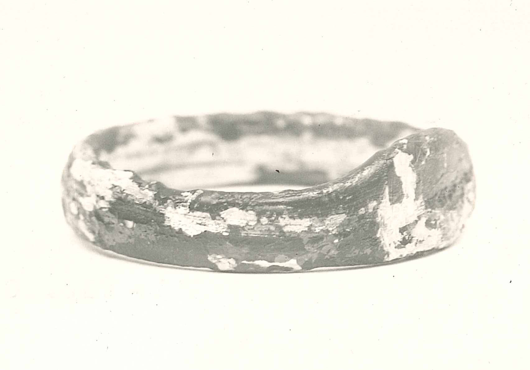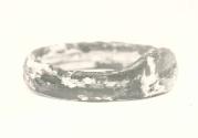 DescriptionGlass ribbon of translucent amber yellow glass, bent into the shape of a circle. Iridescence.
