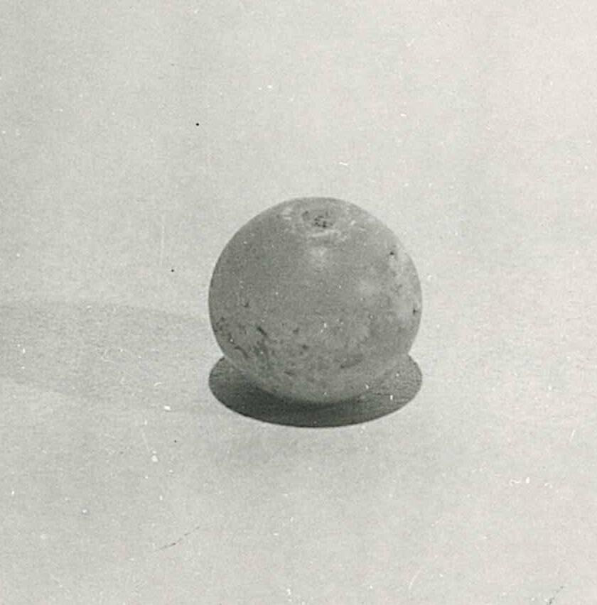 DescriptionClear glass with cloudy white surface film. This is one of a group of five glass beads (1926.24, 1926.31, 1926.37, 1926.38, 1926.39) from China acquired from the dealer Henry Reinhardt & Son.
