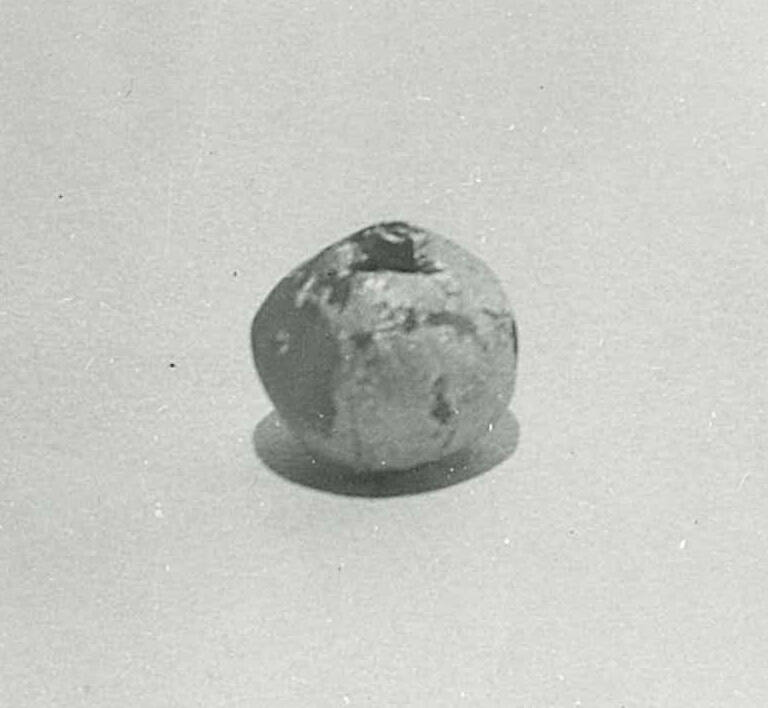 DescriptionGreenish color, with iridescence. This is one of a group of five glass beads (1926.24, 1926.30, 1926.37, 1926.38, 1926.39) from China acquired from the dealer Henry Reinhardt & Son.