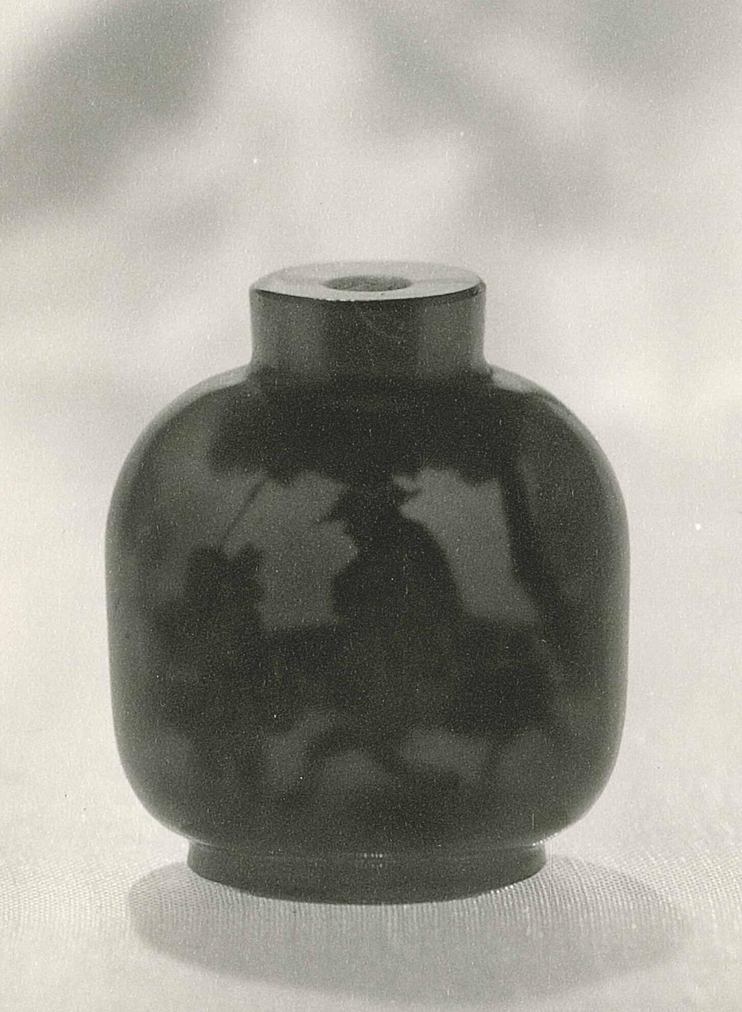 DescriptionImitation agate, painted on the inside with figures. Stopper missing.