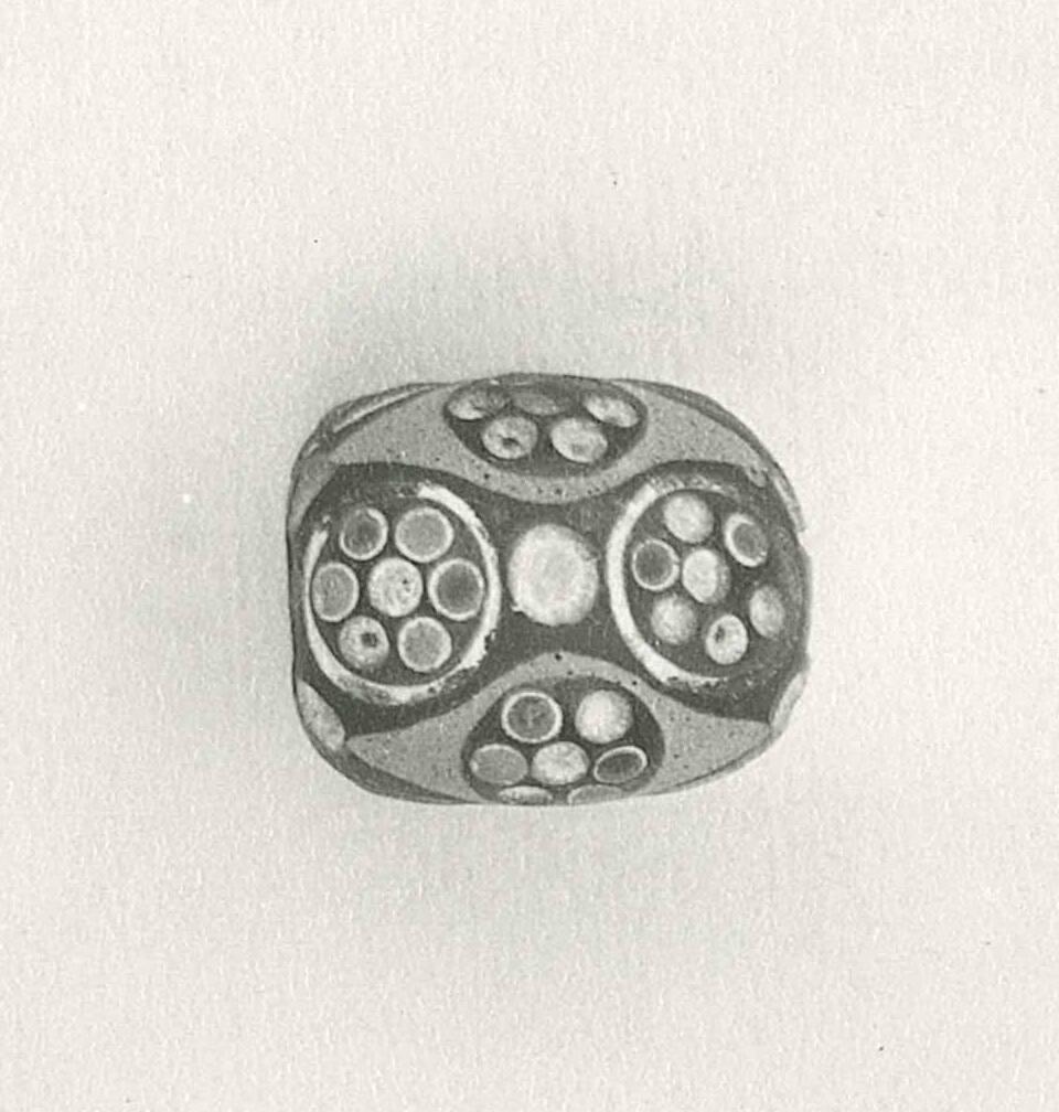 This bead belongs to a group of eight (1948.79-1948.86) exhibited by the dealer C. T. Loo at the Toledo Museum of Art’s East Asiatic Glass Exhibition in 1948. At the time, many of the beads were presumed to have come from Warring States Period tombs in Jincun, Henan Province, or the Chu State capital of Shouchun, Anhui Province.