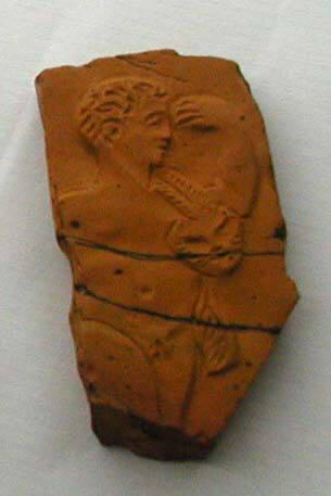 DescriptionFragment of cameo glass carved in opaque yellowish material. The preserved section features the partial figure of a youthful male, possibly heroic in character. Only part of the head and upper torso survives. The surface is weathered.