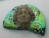 MediumVery fine head on a background of translucent manganese purple glass. Iridescence.