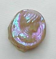 Small round colorless disk with relief profile bust facing right. Youthful features, relatively long striated locks- male or female.