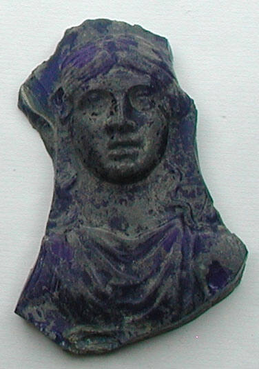 MediumFemale bust, deeply cut in translucent cobalt blue glass.
