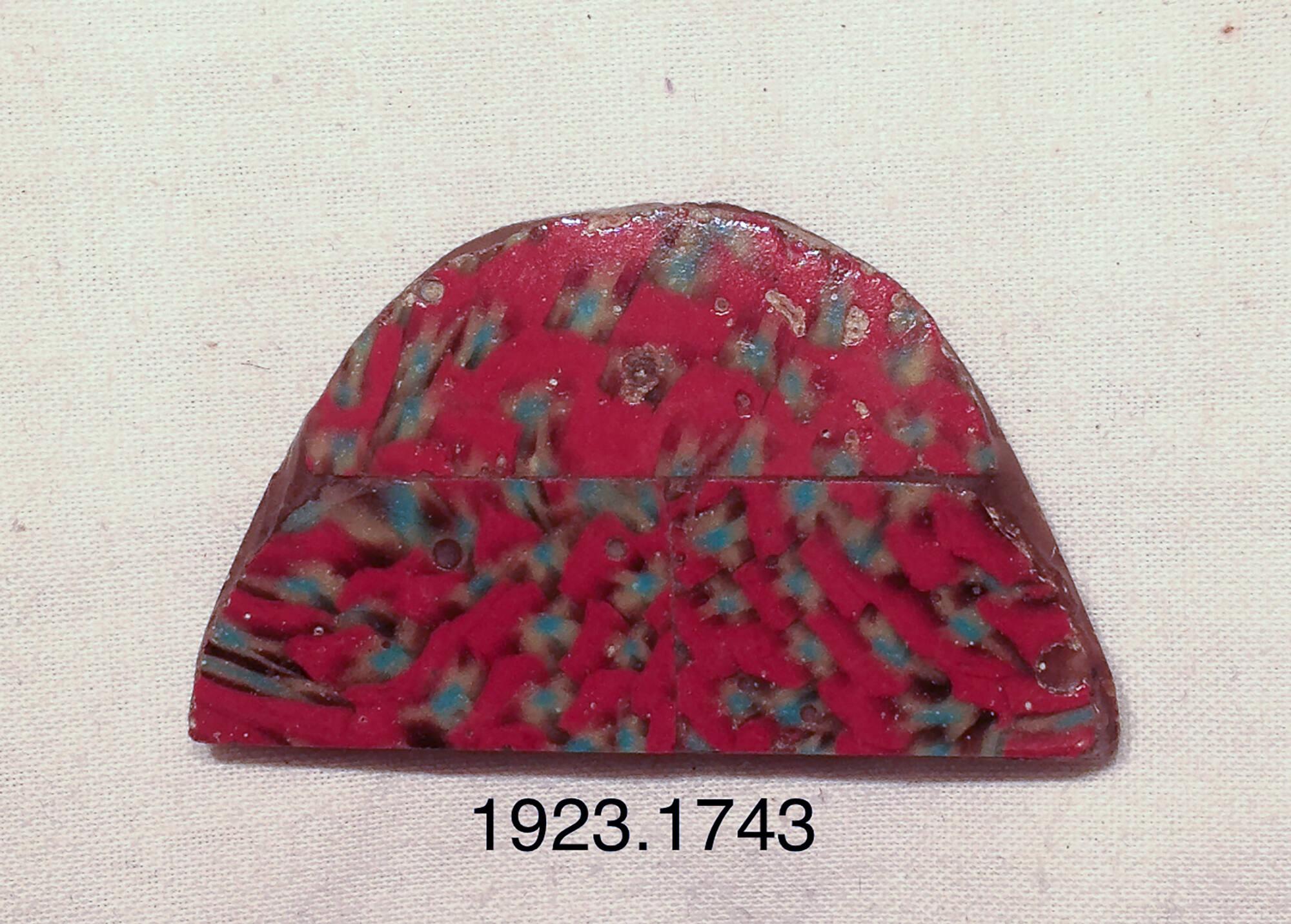 MediumOrnamental pattern of red, turquoise blue and other colored opaque glass.