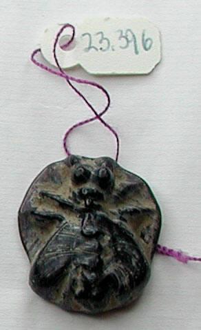 DescriptionThis small purple glass token shows a fly in raised, naturalistic detail. It was made using a mold and has developed a shimmering surface over time.