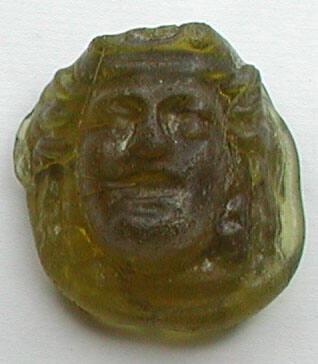 DescriptionHead of Medusa molded in translucent green glass. Used as decoration of vase.
