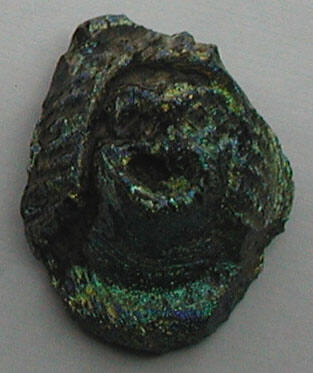 DescriptionHead of Medusa molded in translucent light yellowish and green glass. Intended as decoration of vase.