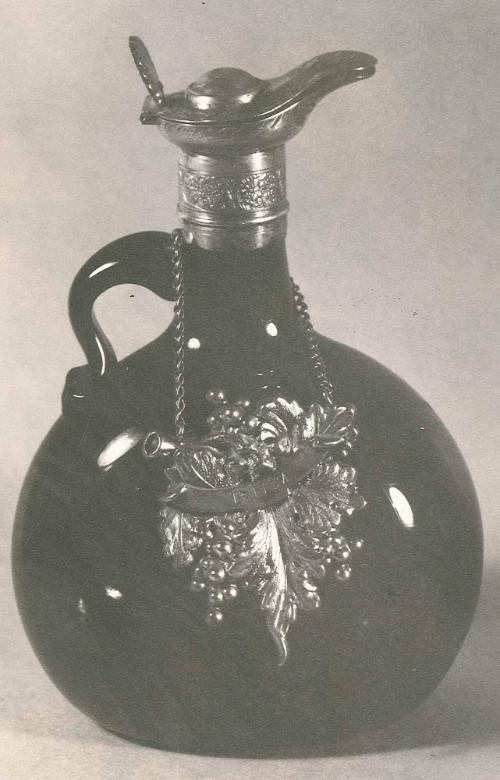 DescriptionDark reddish amber with silver mounted top and embossed silver tag.