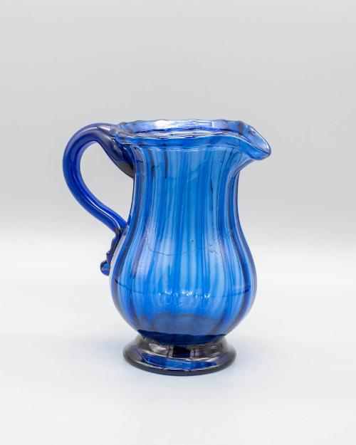 DescriptionDark blue. Vertically ribbed pattern blown in figured mold. Expanded mold-blown, applied handle.