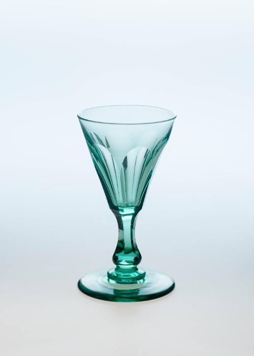 DescriptionLight green flint glass with Silesian stem on plain conical foot.