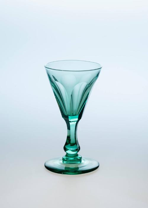 DescriptionLight green flint glass with Silesian stem on plain conical foot.